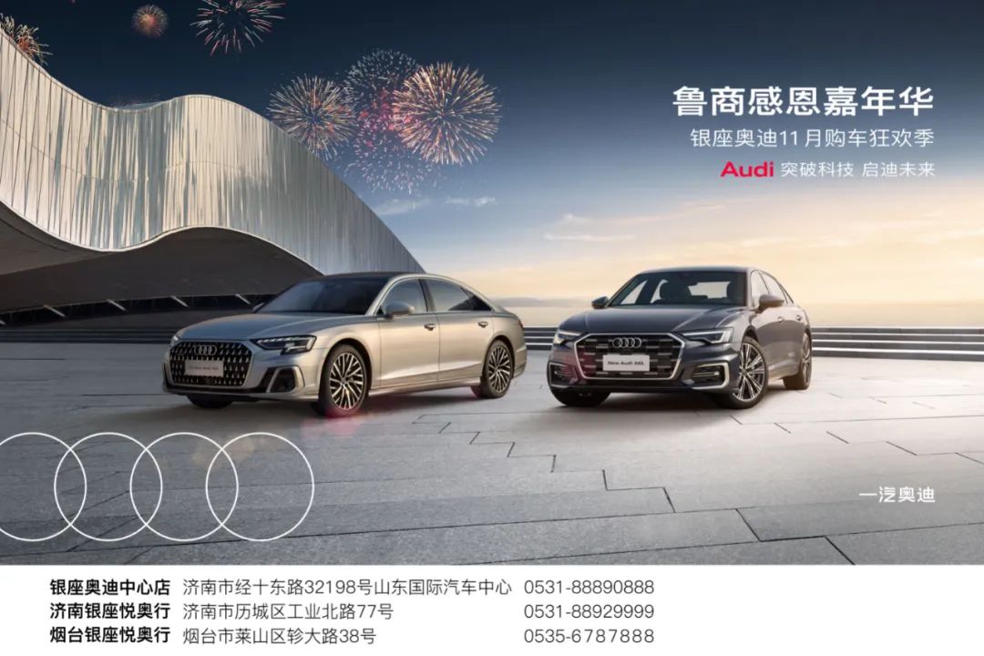 即日起至11月底,银座奥迪三店联动,到店购车即可尊享"鲁商30年”专属权益。